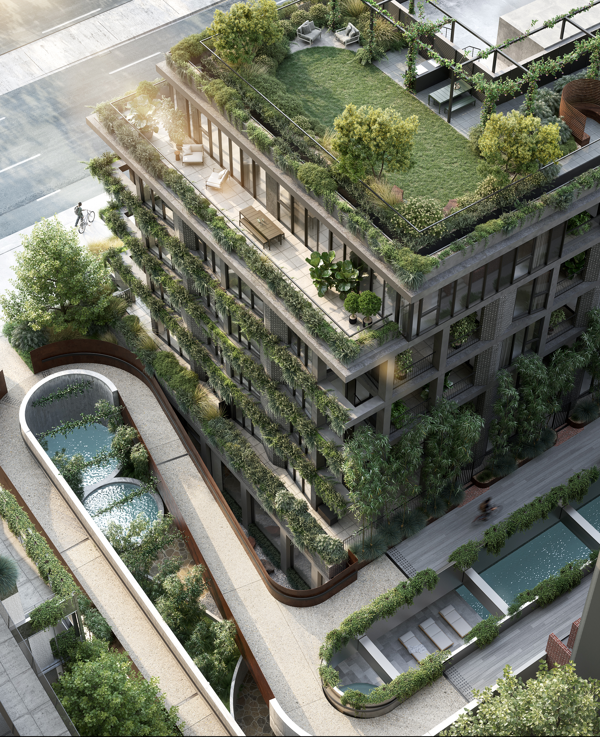 Thoughtful landscape design and cascading greenery create inviting outdoor spaces. A shared rooftop terrace offers sweeping city views, a communal vegetable garden, BBQ facilities, and furnished areas—whether you’re seeking a spot for quiet contemplation or hosting a sunset soiree, we’ve got it sorted.